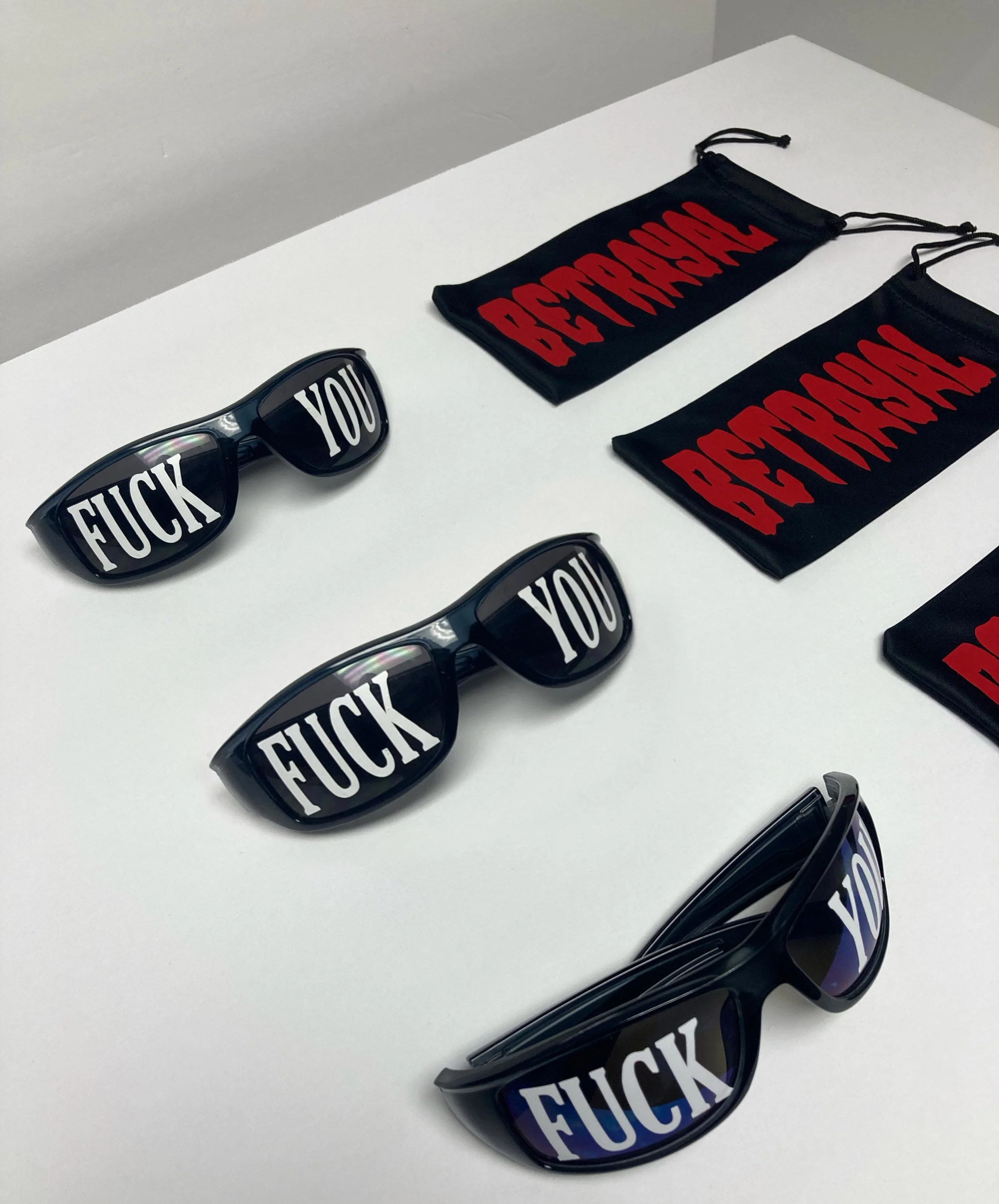 Image 1 of 1 "FUCK YOU " $30.00 Jet Black Tinted lens Designed by Not Impressed Add To Cart Added! Jet Black Tinted lens Designed by Not Impressed